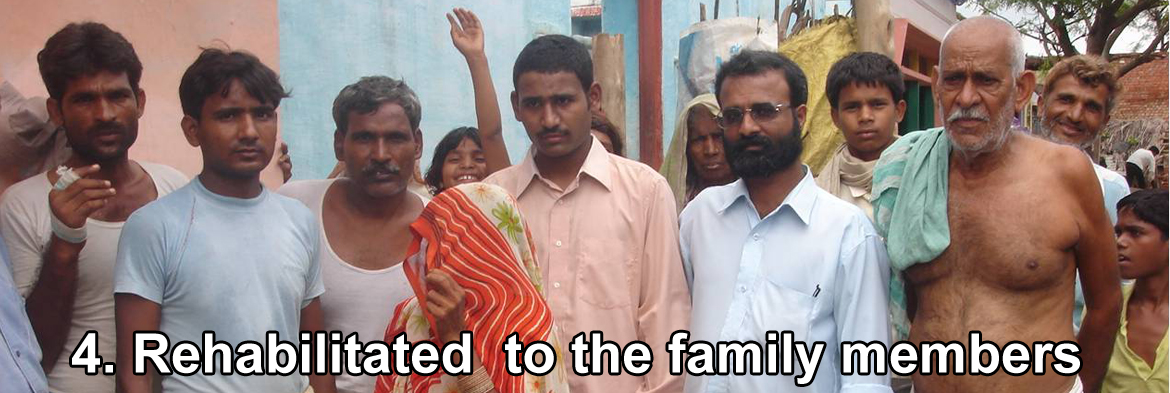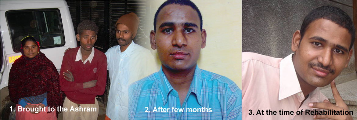 The incident is about a mentally disturbed youth who was begging in the streets of Delhi. He didn’t knew who he was. We brought him to our home/ashram. After days of loving care and God’s grace the person regained his memory. He recollected that he belonged to Bharatpur in Rajasthan and he had a loving father and mother. So we went out in search of that place. After proper enquiries, we found the village in Rajasthan eagerly waiting for the lost son. The son’s name was Hemsingh. On his return, there was a jubilant mood all around. An entire village was cheering at the return of a son lost long ago. Now Hemsingh is completely cured and is married to a girl Pehra and they are leading a happy married life.